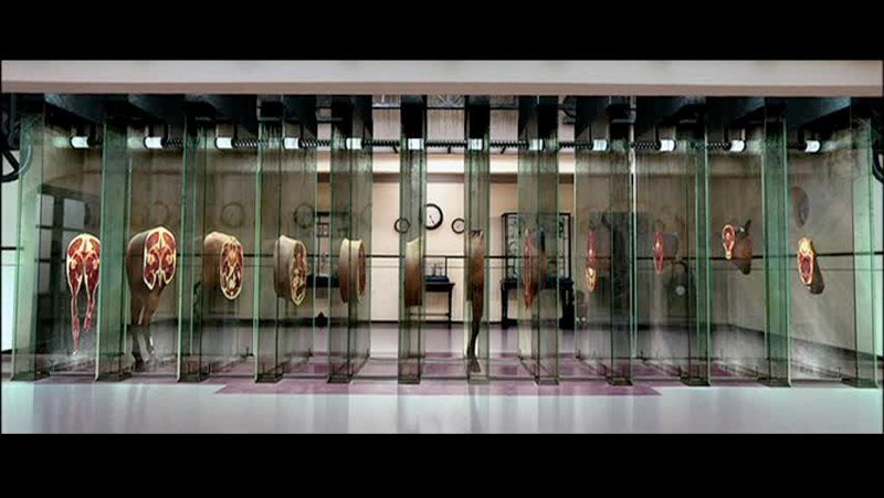 Opera sets combined with snow globes. Quay Brothers meet Damien Hirst meet Moriko Mori. A truly surreal experience. I am very proud of the work the art department accomplished here.